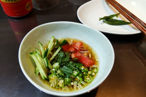 ランキング参加中男の料理 ゴールデンウィーク最終日、美味しいものばかり食べて胃に負担がかかり気味だったので、今回はさっぱりとそうめんにすることに。 そうめんの薬味など 右側は貰い物のそうめん まずは薬味を切ります。そうめんを煮るのは最後。失敗…